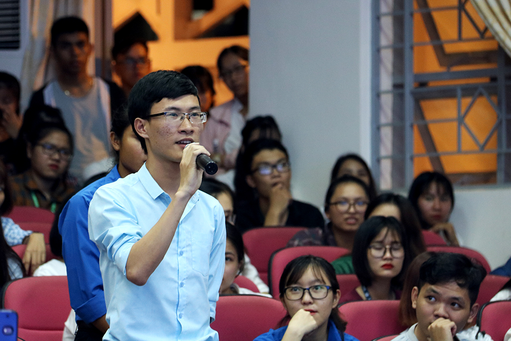 Sinh viên đặt câu hỏi cho các diễn giả và khách mời. Diễn giả Phạm Gia Chi Bảo chia sẻ, các bạn trẻ muốn khởi nghiệp cần trả lời được câu hỏi vì sao phải khởi nghiệp và đảm bảo động lực đủ mạnh mẽ để khởi nghiệp, sẵn sàng chấp nhận những phép thử sai. Trước hết cần phát huy những thế mạnh của bản thân trước khi tìm đến những nguồn lực bên ngoài. Hiểu về bản thân, phân tích thế mạnh, điểm yếu của bản thân khó hơn nhiều so với việc đánh giá người khác.
