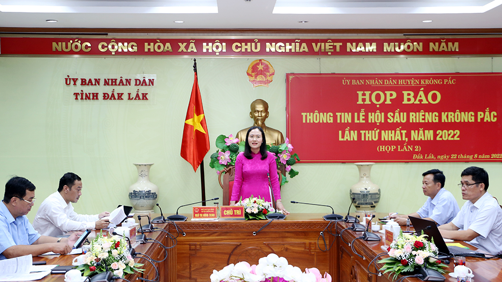 Sáng 22/8, UBND huyện Krông Pắc tổ chức Họp báo thông tin Lễ hội Sầu riêng Krông Pắc lần thứ Nhất năm 2022. Dự họp báo có đồng chí Y Giang Gry Niê Knơng - Phó Chủ tịch UBND tỉnh; đại diện các sở, ngành liên quan của tỉnh; các cơ quan báo chí trên địa bàn tỉnh.