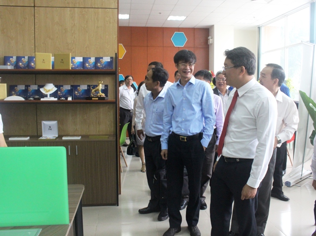 Các đại biểu tham quan không gian làm việc chung về khởi nghiệp